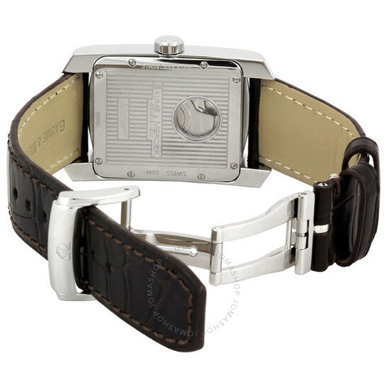 علبة فولاذية مصقولة مع سوار جلدي بني داكن. إطار ثابت من الفولاذ المقاوم للصدأ المصقول. ميناء فضي بعقارب زرقاء هيكلية ومؤشرات ساعات، وأرقام عربية تُشير إلى موضعي الساعة 3 و6. نوع الميناء: تناظري. عقارب مضيئة ومؤشرات الميناء. عرض التاريخ عند موضع الساعة 6. حركة أوتوماتيكية. زجاج ياقوت مقاوم للخدش. غطاء خلفي قابل للفك. حجم العلبة: 30 مم × 45.5 مم. سُمكها: 11.5 مم. شكل العلبة: تونيو. مشبك قابل للطي ثلاثي الطي قابل للتعديل. مقاومة للماء حتى عمق 50 مترًا / 165 قدمًا. الوظائف: الساعات، الدقائق، الثواني، التاريخ. تصميم ساعة فاخرة. علامة الساعة: صناعة سويسرية. إصدارات المنتج: MOA8753، M0A08753، 8753، 08753. ساعة بوم آند ميرسييه هامبتون ميليس للرجال 8753.
