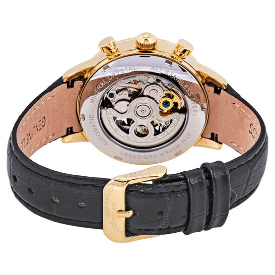 علبة من الفولاذ المقاوم للصدأ بلون ذهبي مع حزام جلدي أسود (منقوش بنقش جلد التمساح). إطار ذهبي ثابت مرصع بالكريستال. ميناء أسود هيكلي بعقارب ذهبية مضيئة وعلامات ساعات بأرقام عربية. علامات دقائق حول الحافة الخارجية. نوع الميناء: تناظري. عقارب وعلامات مضيئة. عرض التاريخ/اليوم. ثلاثة أقراص فرعية متعددة الوظائف تعرض: يوم الأسبوع، والتاريخ، وقرص فرعي بنظام ٢٤ ساعة. حركة أوتوماتيكية مع احتياطي طاقة لمدة ٣٦ ساعة. كريستال معدني مقاوم للخدش مطلي بالياقوت. تاج قابل للسحب/الدفع. غطاء خلفي شفاف. شكل دائري، حجم العلبة: ٣٨ مم، سمكها: ١٣ مم. عرض السوار: ١٧ مم. مشبك تانغ. مقاومة للماء حتى عمق ٣٠ مترًا / ١٠٠ قدم. الوظائف: التاريخ، اليوم، الساعة، الدقيقة، الثانية. معلومات إضافية: متوسط معدل الكسب/الخسارة: +/- ٤٥ ثانية يوميًا. طراز ساعة رسمية. ساعة الإمبراطورة بياتريس النسائية ذات الميناء الأسود الهيكلي EM2004.