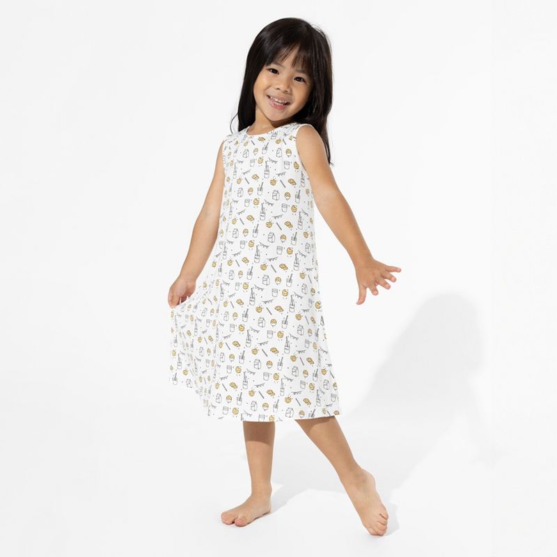 استمتعي بأجواء من المرح مع فستان ميلك آند كوكيز الأبيض بدون أكمام للفتيات! يتميز هذا الفستان بجماله الأخّاذ ونعومته الفائقة، وهو مثالي لمغامرات طفلتكِ اليومية. مصنوع من قماش بامبو صديق للبيئة، ليمنحها شعورًا بالفخامة مع الحفاظ على البيئة. تصميمه بدون أكمام يضمن لها الراحة والبرودة في الأيام الدافئة، بينما تضفي طبعة الحليب والكوكيز المرحة لمسة من المرح على إطلالتها. دلليها بهذا الفستان الرائع وشاهديها تتألق بأناقة! تسوقي الآن وأضيفي لمسة جمالية إلى خزانة ملابسها!
