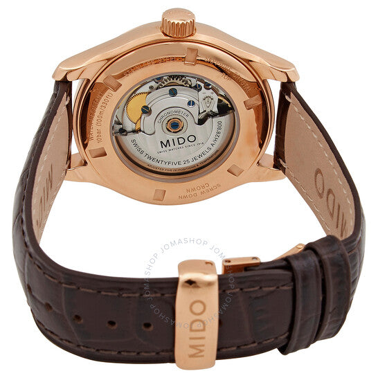 علبة من الفولاذ المقاوم للصدأ بلون الذهب الوردي مع سوار جلدي بني. إطار ثابت من الفولاذ المقاوم للصدأ بلون الذهب الوردي. ميناء بني مع عقارب وعلامات ساعات ذهبية وردية اللون. علامات دقائق حول الحافة الخارجية. نوع الميناء: تناظري. عرض يوم الأسبوع والتاريخ عند موضع الساعة 3. حركة أوتوماتيكية. زجاج ياقوت مقاوم للخدش. تاج قابل للسحب/الدفع. غطاء خلفي شفاف. شكل دائري، مقاس العلبة: 40 مم، سمكها: 11 مم. عرض السوار: 18 مم. مشبك تانغ. مقاومة للماء حتى عمق 100 متر / 330 قدمًا. الوظائف: التاريخ، اليوم، الساعة، الدقيقة، الثانية. سلسلة بيلونا. طراز ساعة رسمية. علامة الساعة: صناعة سويسرية. ساعة ميدو بيلونا أوتوماتيكية للرجال بمينا بني M0014313629112.
