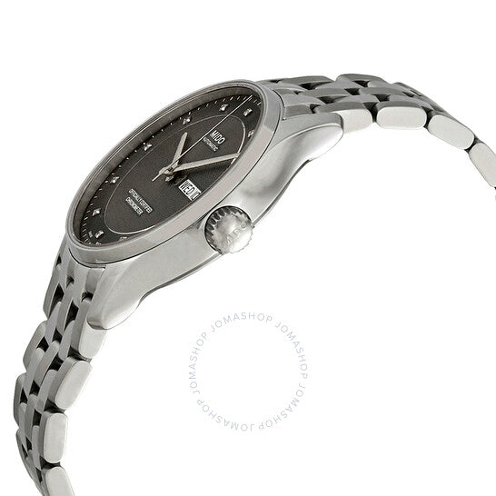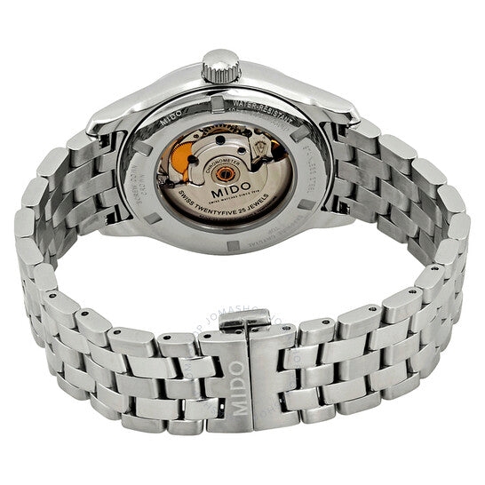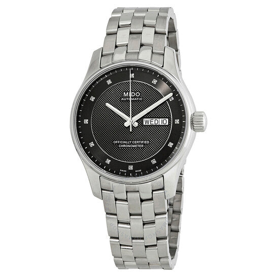 علبة من الفولاذ المقاوم للصدأ مع سوار من الفولاذ المقاوم للصدأ. إطار ثابت من الفولاذ المقاوم للصدأ. ميناء أسود بعقارب فضية اللون وعلامات ساعات من الألماس. علامات دقائق حول الحافة الخارجية. نوع الميناء: تناظري. عرض يوم الأسبوع والتاريخ عند موضع الساعة 3. حركة أوتوماتيكية. زجاج ياقوت مقاوم للخدش. غطاء خلفي شفاف. شكل دائري. حجم العلبة: 40 مم. سُمكها: 10 مم. مشبك قابل للطي بزر ضغط. مقاومة للماء حتى عمق 100 متر / 330 قدمًا. الوظائف: التاريخ، اليوم، الساعة، الدقيقة، الثانية. سلسلة بيلونا. تصميم ساعة كاجوال. علامة الساعة: صناعة سويسرية. ساعة ميدو بيلونا أوتوماتيكية للرجال بمينا أسود مرصعة بالألماس، طراز M0014311106692.