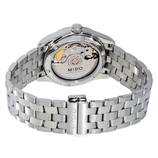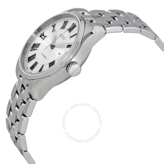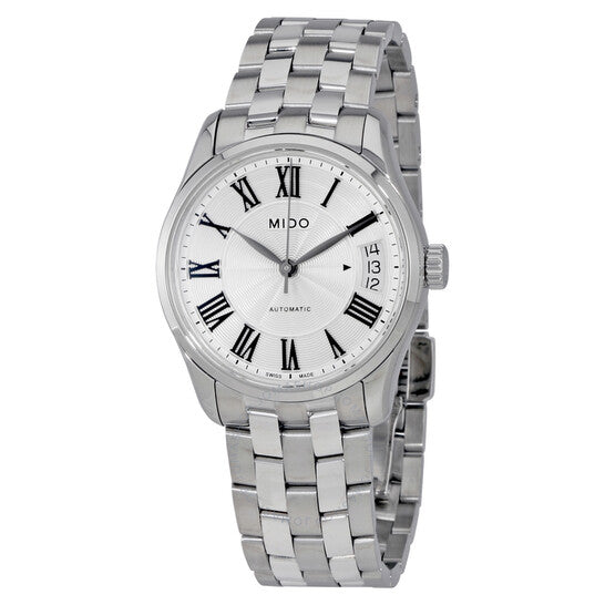 علبة من الفولاذ المقاوم للصدأ مع سوار من الفولاذ المقاوم للصدأ. إطار ثابت من الفولاذ المقاوم للصدأ. ميناء فضي بعقارب سوداء وعلامات ساعات رومانية. علامات دقائق حول الحافة الخارجية. نوع الميناء: تناظري. عرض التاريخ عند موضع الساعة 3. حركة أوتوماتيكية من عيار 80.611 مع احتياطي طاقة يصل إلى 80 ساعة. زجاج ياقوت مقاوم للخدش. غطاء خلفي شفاف. حجم العلبة: 33 مم. شكلها دائري. عرض السوار: 18 مم. مشبك قابل للطي بزر ضغط. مقاومة للماء حتى عمق 50 مترًا / 165 قدمًا. الوظائف: التاريخ، الساعة، الدقائق، الثواني. طراز ساعة رسمية. علامة الساعة: صناعة سويسرية. ساعة ميدو بيلونا II أوتوماتيكية نسائية بمينا فضي M0242071103300.