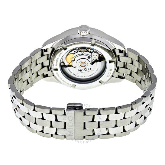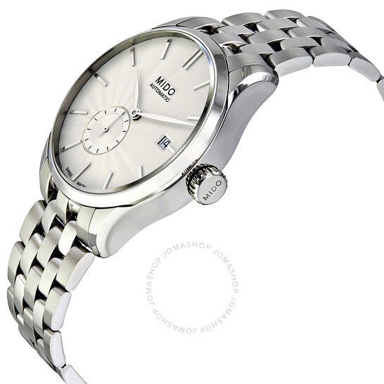 علبة من الفولاذ المقاوم للصدأ مع سوار من الفولاذ المقاوم للصدأ. إطار ثابت من الفولاذ المقاوم للصدأ. ميناء فضي اللون مع عقارب فضية اللون على شكل ورقة شجر وعلامات ساعات. نوع الميناء: تناظري. عرض التاريخ عند موضع الساعة الثالثة. ميناء فرعي للثواني الصغيرة. آلية حركة أوتوماتيكية من عيار ETA 2825-2، مبنية على ETA 2824-2، تحتوي على 25 جوهرة، تنبض بتردد 28800 ذبذبة في الساعة، ولديها احتياطي طاقة لمدة 42 ساعة تقريبًا. زجاج من الياقوت المقاوم للخدش. تاج قابل للسحب/الدفع. غطاء خلفي شفاف. شكل دائري. حجم العلبة: 40 مم. سمكها: 12.5 مم. عرض السوار: 20 مم. مشبك قابل للطي بزر ضغط. مقاومة للماء حتى عمق 50 مترًا / 165 قدمًا. الوظائف: التاريخ، الساعة، الدقيقة، الثانية. سلسلة بيلونا II. تصميم ساعة فاخرة. علامة الساعة: صناعة سويسرية. ساعة ميدو بيلونا II أوتوماتيكية للرجال بمينا فضي M0244281103100.