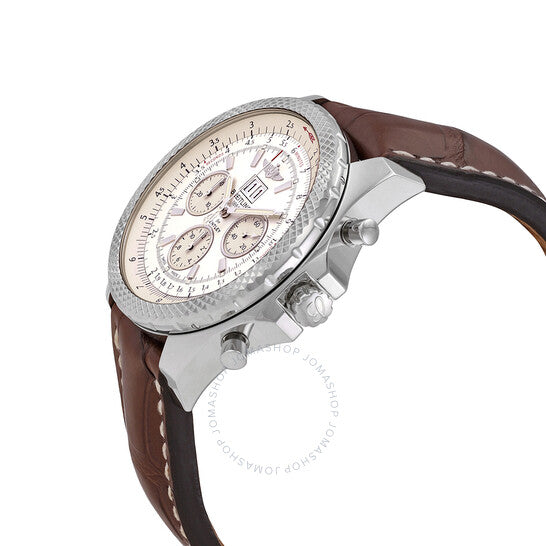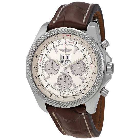 علبة فضية اللون من الفولاذ المقاوم للصدأ مع سوار جلدي بني. إطار دوار ثنائي الاتجاه من الفولاذ المقاوم للصدأ فضي اللون. عقارب وعلامات ساعات فضية اللون. علامات دقائق. مقياس سرعة حول الحافة الخارجية. نوع الميناء: تناظري. عقارب وعلامات مضيئة. عرض التاريخ عند موضع الساعة ١٢. كرونوغراف - ثلاثة موانئ فرعية تعرض: ٦٠ ثانية، ٣٠ دقيقة، و١٢ ساعة. حركة بريتلينغ كاليبر ٤٤ أوتوماتيكية، مبنية على ETA ٢٨٩٢-A٢، تحتوي على ٢١ جوهرة، تنبض بتردد ٢٨٨٠٠ ذبذبة في الساعة، ولديها احتياطي طاقة لمدة ٤٢ ساعة تقريبًا. زجاج ياقوت مقاوم للخدش. تاج لولبي. غطاء خلفي صلب. شكل دائري، حجم العلبة: ٤٧.٨ مم. عرض السوار: ٢٤ مم. مشبك قابل للطي بزر ضغط. مقاومة للماء حتى عمق ١٠٠ متر / ٣٣٠ قدمًا. الوظائف: كرونوغراف، تاريخ، ساعات، دقائق، ثوانٍ، كرونومتر. سلسلة بنتلي. تصميم ساعة فاخر. علامة الساعة: صناعة سويسرية. ساعة بريتلينغ بنتلي كرونوغراف أوتوماتيكية كرونومتر للرجال A4436412/G679.757P.A20D.1.
