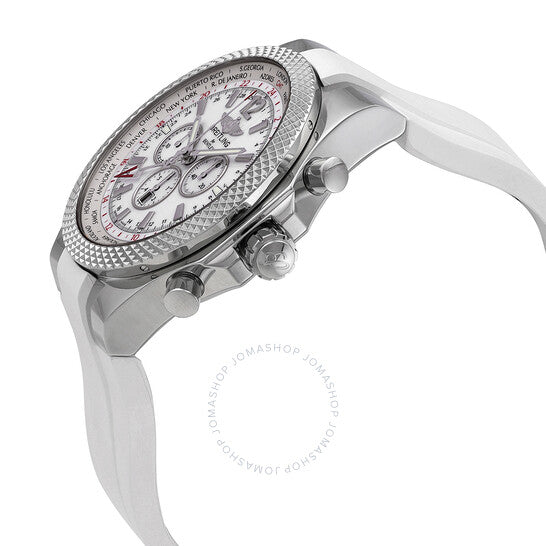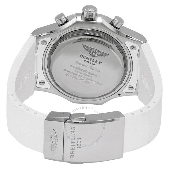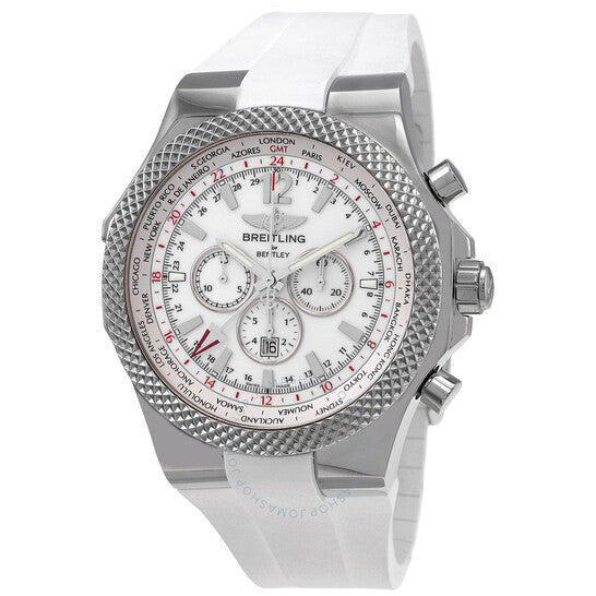 علبة فضية اللون من الفولاذ المقاوم للصدأ مع سوار مطاطي أبيض. ميناء فضي اللون مع عقارب فضية اللون وأرقام عربية للساعات. نوع الميناء: تناظري. عقارب وعلامات مضيئة. عرض التاريخ عند موضع الساعة السادسة. آلية حركة أوتوماتيكية. زجاج ياقوتي مقاوم للخدش. علبة دائرية الشكل، مقاسها: 49 مم. مشبك قابل للطي. مقاومة للماء حتى عمق 100 متر / 330 قدمًا. الوظائف: توقيت غرينتش، المنطقة الزمنية الثانية، الساعات، الدقائق، الثواني. سلسلة بنتلي جي إم تي. تصميم ساعة فاخرة. علامة الساعة: صناعة سويسرية. ساعة بريتلينغ بنتلي جي إم تي أوتوماتيكية للرجال بمينا فضي A4736212/A740.219S.A20D.2.