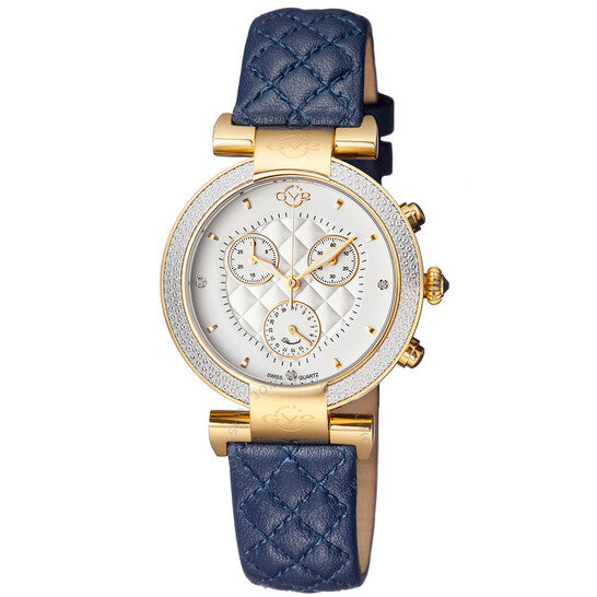 علبة من الفولاذ المقاوم للصدأ فضية اللون مع سوار جلدي أزرق. إطار ثابت فضي اللون مرصع بالألماس. ميناء أبيض بعقارب ذهبية اللون وعلامات ساعات. علامات دقائق حول الحافة الداخلية. نوع الميناء: تناظري. عقارب مضيئة. نافذة عرض التاريخ عند موضع الساعة 3. كرونوغراف - ثلاثة موانئ فرعية تعرض: 60 ثانية، 30 دقيقة، والتاريخ. حركة كوارتز ISA Caliber 8171/202. زجاج ياقوت مقاوم للخدش ومضاد للانعكاس. تاج قابل للسحب/الدفع. هيكل دائري، مقاسه: 37 مم، سمكه: 9.1 مم. عرض السوار: 19 مم، طوله: 7.5 بوصة. مشبك قابل للطي. مقاومة للماء حتى عمق 30 مترًا / 100 قدم. الوظائف: كرونوغراف، تاريخ، ساعة، دقيقة، ثانية. سلسلة بيرليتا. طراز ساعة رسمية. علامة الساعة: صناعة سويسرية. ساعة GV2 من جيفريل بيرليتا كرونوغراف مرصعة بالألماس للسيدات 1554.