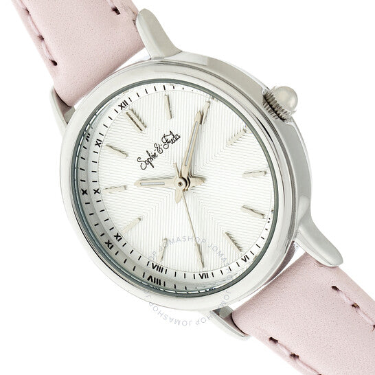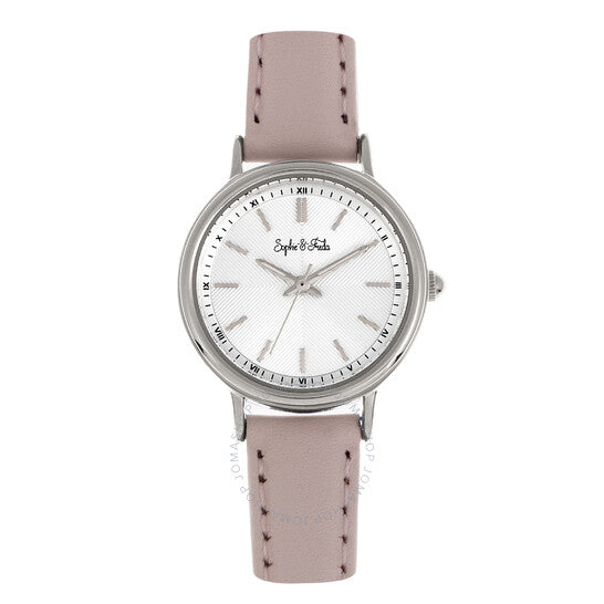 علبة من سبيكة معدنية فضية اللون مع حزام من الجلد الأصلي بلون وردي فاتح. إطار ثابت من سبيكة معدنية فضية اللون. ميناء فضي اللون مع عقارب وعلامات ساعات فضية اللون. علامات دقائق حول الحافة الخارجية. نوع الميناء: تناظري. حركة كوارتز. زجاج معدني مقاوم للخدش. تاج قابل للسحب/الدفع. غطاء خلفي صلب. شكل دائري، مقاس العلبة: ٢٦ مم، سمكها: ٨ مم. عرض السوار: ١٢ مم. مشبك بإبزيم. مقاومة للماء حتى عمق ٣٠ مترًا / ١٠٠ قدم. الوظائف: الساعات، الدقائق، الثواني. تصميم كاجوال. علامة الساعة: Japan Movt. رقم الموديل: SAFSF4804. ساعة صوفي وفريدا برلين كوارتز نسائية بمينا فضية SF4804.