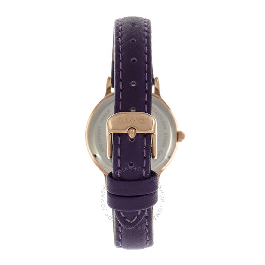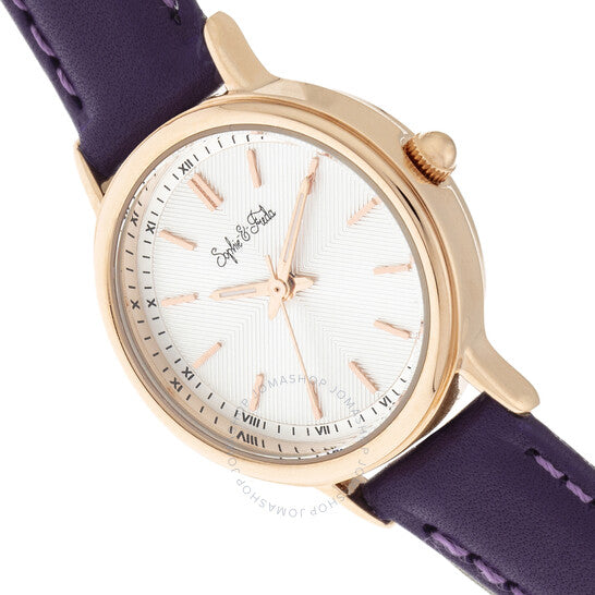 علبة من سبيكة معدنية بلون الذهب الوردي مع حزام من الجلد الأصلي بلون بنفسجي. إطار ثابت من سبيكة معدنية بلون الذهب الوردي. ميناء فضي اللون مع عقارب وعلامات ساعات ذهبية وردية اللون. علامات دقائق حول الحافة الخارجية. نوع الميناء: تناظري. حركة كوارتز. زجاج معدني مقاوم للخدش. تاج قابل للسحب/الدفع. غطاء خلفي صلب. شكل دائري، مقاس العلبة: ٢٦ مم، سمكها: ٨ مم. عرض السوار: ١٢ مم. مشبك بإبزيم. مقاومة للماء حتى عمق ٣٠ مترًا / ١٠٠ قدم. الوظائف: الساعات، الدقائق، الثواني. تصميم كاجوال. علامة الساعة: Japan Movt. رقم الموديل: SAFSF4805. ساعة صوفي وفريدا برلين كوارتز نسائية بمينا فضية SF4805.