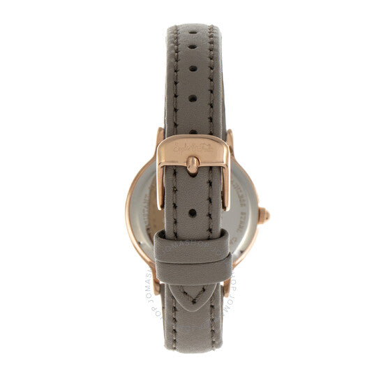 علبة من سبيكة معدنية بلون الذهب الوردي مع حزام من الجلد الأصلي الرمادي. إطار ثابت من سبيكة معدنية بلون الذهب الوردي. ميناء فضي اللون مع عقارب وعلامات ساعات ذهبية وردية اللون. علامات دقائق حول الحافة الخارجية. نوع الميناء: تناظري. حركة كوارتز. زجاج معدني مقاوم للخدش. تاج قابل للسحب/الدفع. غطاء خلفي صلب. شكل دائري، مقاس العلبة: ٢٦ مم، سمكها: ٨ مم. عرض السوار: ١٢ مم. مشبك بإبزيم. مقاومة للماء حتى عمق ٣٠ مترًا / ١٠٠ قدم. الوظائف: الساعات، الدقائق، الثواني. تصميم كاجوال. علامة الساعة: Japan Movt. رقم الموديل: SAFSF4806. ساعة صوفي وفريدا برلين كوارتز نسائية بمينا فضية SF4806.