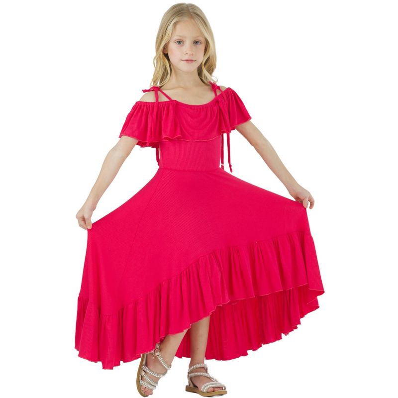 فستان Berry Bliss Hi-Lo Ruffle ذو التصميم المشرق والجريء هو خيار مذهل لخزانة ملابسها الصيفية.