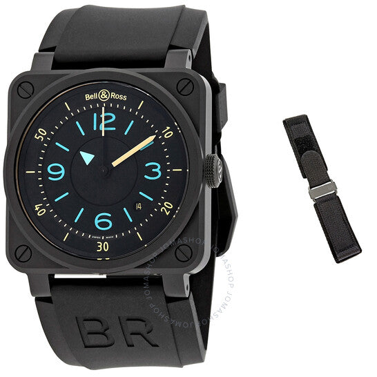 علبة من السيراميك الأسود غير اللامع مع سوار مطاطي أسود. إطار ثابت من السيراميك الأسود غير اللامع. ميناء أسود غير لامع مع عقرب دقائق وساعات رقمي مضيء وعلامات ساعات. أرقام عربية تُشير إلى الساعات 3 و6 و9 و12. علامات دقائق حول الحافة الخارجية. نوع الميناء: تناظري. عقارب وعلامات مضيئة. عرض التاريخ بين الساعة 4 و5. حركة أوتوماتيكية من بيل آند روس، عيار BR-CAL.302، مبنية على سيليتا SW300-1، تحتوي على 25 جوهرة، تنبض بتردد 28800 ذبذبة في الساعة، ولديها احتياطي طاقة لمدة 38 ساعة تقريبًا. زجاج ياقوت مقاوم للخدش. تاج قابل للسحب/الدفع. غطاء خلفي صلب. شكل العلبة مربع. حجم العلبة: 42 مم. سمكها: 9.80 مم. مشبك تانغ. مقاومة للماء حتى عمق 100 متر / 330 قدمًا. الوظائف: التاريخ، الساعة، الدقائق، الثواني. معلومات إضافية: إصدار محدود من 999 قطعة. سلسلة بوصلة ثنائية. تصميم ساعة فاخر. علامة الساعة: صناعة سويسرية. ساعة بيل آند روس بوصلة ثنائية أوتوماتيكية للرجال BR0392-IDC-CE/SRB.