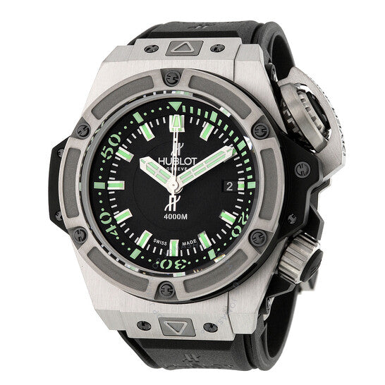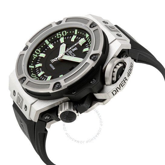 علبة من التيتانيوم مع سوار مطاطي أسود. إطار ثابت من التيتانيوم. ميناء أسود غير لامع مع عقارب رمادية مضيئة ومؤشرات ساعات. مؤشرات دقائق بأرقام عربية (بفاصل ١٠ دقائق). مؤشرات دقائق حول الحافة الخارجية. نوع الميناء: تناظري. عقارب ومؤشرات مضيئة. عرض التاريخ عند موضع الساعة ٣. حركة أوتوماتيكية مع احتياطي طاقة ٤٢ ساعة. زجاج ياقوت مقاوم للخدش. تاج لولبي. غطاء خلفي صلب. قطر العلبة: ٤٨ مم. سُمكها: ٢٢.٤ مم. شكلها دائري. عرض السوار: ٢٤.١٣ مم. طول السوار: ٩.٥ بوصة. مشبك قابل للطي. مقاومة للماء حتى عمق ٤٠٠٠ متر / ١٣٢٠٠ قدم. الوظائف: الساعات، الدقائق، الثواني، التاريخ. طراز الساعة الرياضية. ملصق الساعة: صناعة سويسرية. إصدارات متنوعة: 731 NX 1190 RX، 731-NX-1190-RX، 731/NX/1190/RX، 731NX1190RX. ساعة هوبلو بيغ بانغ كينغ باور أوتوماتيكية سوداء مطفية للرجال، مصنوعة من المطاط الأسود، 731.NX.1190.RX.