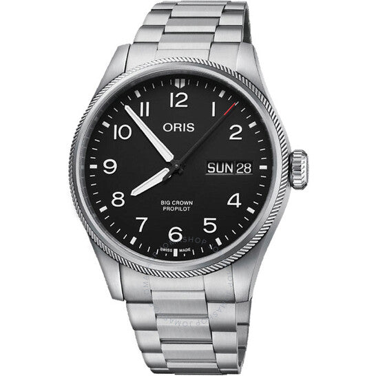 علبة وسوار من الفولاذ المقاوم للصدأ فضي اللون. إطار ثابت من الفولاذ المقاوم للصدأ فضي اللون. ميناء أسود بعقارب فضية اللون وعلامات ساعات بأرقام عربية. علامات دقائق حول الحافة الخارجية. نوع الميناء: تناظري. عقارب وعلامات مضيئة. عرض يوم الأسبوع والتاريخ عند موضع الساعة 3. حركة أوريس كاليبر 752 أوتوماتيكية، مبنية على SW 220-1، تحتوي على 26 جوهرة، تنبض بمعدل 28800 ذبذبة في الساعة، ولديها احتياطي طاقة يدوم حوالي 38 ساعة. زجاج من الياقوت المقاوم للخدش. تاج لولبي. غطاء خلفي شفاف. شكل العلبة دائري، مقاسها 44 مم. مشبك قابل للطي بزر ضغط. مقاومة للماء حتى عمق 100 متر / 330 قدمًا. الوظائف: التاريخ، اليوم، الساعة، الدقيقة، الثانية. سلسلة بيج كراون. تصميم كاجوال. علامة الساعة: صناعة سويسرية. ساعة أوريس بيج كراون أوتوماتيكية بمينا أسود للرجال 01 752 7760 4164-07 8 22 08.