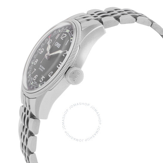 علبة وسوار من الفولاذ المقاوم للصدأ فضي اللون. إطار ثابت من الفولاذ المقاوم للصدأ فضي اللون. ميناء أسود بعقارب فضية اللون على شكل كاتدرائية وعلامات ساعات بأرقام عربية. نوع الميناء: تناظري. مؤشر للتاريخ. عيار أوريس 754، قاعدة SW 200-1، حركة أوتوماتيكية، مبنية على SW 200-1، تحتوي على 26 جوهرة، تنبض بمعدل 28800 ذبذبة في الساعة، ولديها احتياطي طاقة يدوم حوالي 38 ساعة. زجاج من الياقوت المقاوم للخدش والانعكاس. غطاء خلفي شفاف. شكل العلبة دائري، مقاسها: 40 مم، سمكها: 11.70 مم. مشبك قابل للطي بزر ضغط. مقاومة للماء حتى عمق 50 مترًا / 150 قدمًا. الوظائف: التاريخ، الساعة، الدقيقة، الثانية. سلسلة Big Crown. تصميم ساعة كاجوال. علامة الساعة: صناعة سويسرية. ساعة أوريس بيج كراون أوتوماتيكية بمينا أسود للرجال 01 754 7741 4064-07 8 20 22.