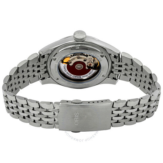 علبة وسوار من الفولاذ المقاوم للصدأ فضي اللون. إطار ثابت من الفولاذ المقاوم للصدأ فضي اللون. ميناء أزرق مع عقارب مضيئة فضية اللون على شكل كاتدرائية وعلامات ساعات بأرقام عربية. علامات دقائق. مقياس تاريخ حول الحافة الخارجية (تاريخ المؤشر). نوع الميناء: تناظري. عقارب وعلامات مضيئة. تاريخ المؤشر. حركة أوريس كاليبر 754، قاعدة SW 200-1 أوتوماتيكية، مبنية على SW 200-1، تحتوي على 26 جوهرة، تنبض بمعدل 28800 ذبذبة في الساعة، ولديها احتياطي طاقة لمدة 38 ساعة تقريبًا. زجاج من الياقوت المقاوم للخدش. تاج لولبي. غطاء خلفي شفاف. شكل العلبة دائري، مقاسها: 40 مم. عرض السوار: 20 مم. مشبك قابل للطي. مقاومة للماء حتى عمق 50 مترًا / 165 قدمًا. الوظائف: التاريخ، الساعة، الدقائق، الثواني. سلسلة Big Crown. تصميم ساعة كاجوال. علامة الساعة: صناعة سويسرية. ساعة أوريس بيج كراون أوتوماتيكية بمينا أزرق للرجال 01 754 7741 4065-07 8 20 22.