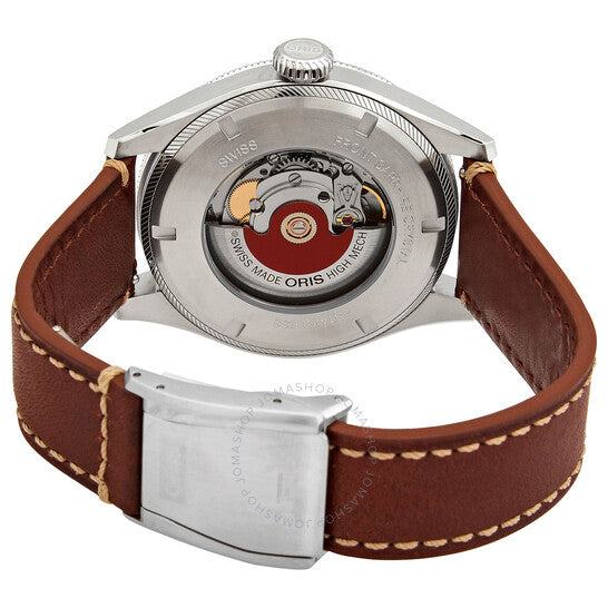 علبة من الفولاذ المقاوم للصدأ مع سوار من جلد العجل البني. إطار ثابت مُخدّد من الفولاذ المقاوم للصدأ. ميناء رمادي مع عقارب فضية مضيئة وعلامات ساعات بأرقام عربية. علامات دقائق حول الحافة الخارجية. نوع الميناء: تناظري. عقارب وعلامات مضيئة. عرض يوم الأسبوع والتاريخ عند موضع الساعة 3. حركة أوريس أوتوماتيكية عيار 752، مبنية على SW 220-1، تحتوي على 26 جوهرة، تنبض بتردد 28800 ذبذبة في الساعة، ولديها احتياطي طاقة لمدة 38 ساعة تقريبًا. زجاج من الياقوت المقاوم للخدش. تاج لولبي. غطاء خلفي شفاف. شكل دائري. حجم العلبة: 44 مم. عرض السوار: 22 مم. مشبك قابل للطي بزر ضغط. مقاومة للماء حتى عمق 100 متر / 330 قدمًا. الوظائف: التاريخ، اليوم، الساعة، الدقيقة، الثانية. سلسلة بيج كراون. تصميم ساعة كاجوال. علامة الساعة: صناعة سويسرية. ساعة أوريس بيج كراون أوتوماتيكية بمينا رمادي للرجال 01 752 7760 4063-07 5 22 07LC.