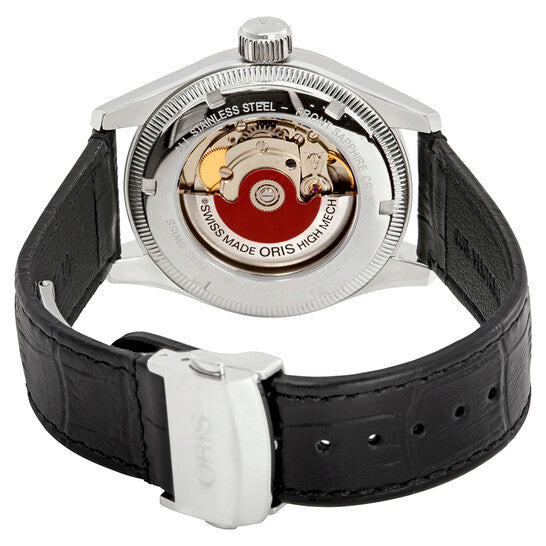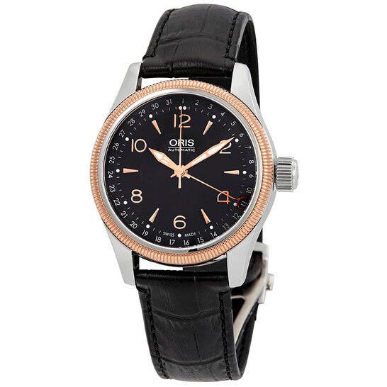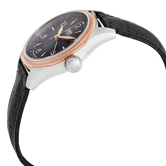 علبة من الفولاذ المقاوم للصدأ مع سوار جلدي أسود. إطار ثابت مطلي بالذهب الوردي بتقنية الترسيب الفيزيائي للبخار (PVD). ميناء أسود بعقارب مضيئة بلون الذهب الوردي، وأرقام عربية وعلامات ساعات. علامات دقائق. مقياس تاريخ حول الحافة الخارجية. نوع الميناء: تناظري. عقارب وعلامات مضيئة. عيار أوريس 754، قاعدة حركة أوتوماتيكية SW 200-1 مع احتياطي طاقة لمدة 38 ساعة. زجاج من الياقوت المقاوم للخدش. تاج لولبي. غطاء خلفي شفاف. شكل دائري، مقاس العلبة: 40 مم، سمكها: 11.7 مم. عرض السوار: 20 مم. مشبك قابل للطي بزر ضغط. مقاومة للماء حتى عمق 100 متر / 330 قدمًا. الوظائف: التاريخ، الساعة، الدقيقة، الثانية. تصميم ساعة كاجوال. علامة الساعة: صناعة سويسرية. ساعة أوريس بيج كراون أوتوماتيكية للرجال 01 754 7679 4334-07 5 20 76FC.