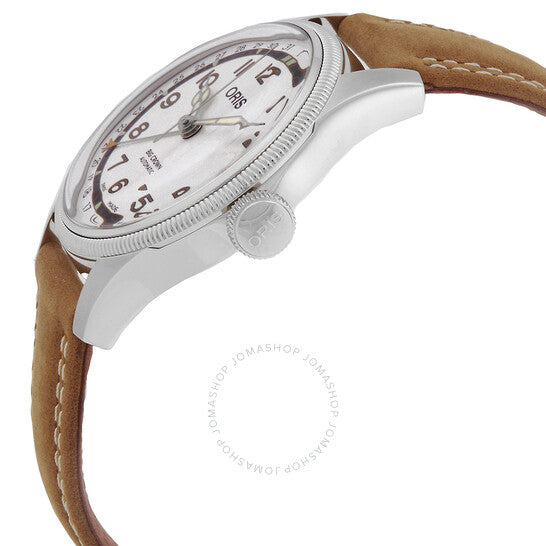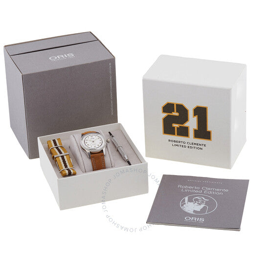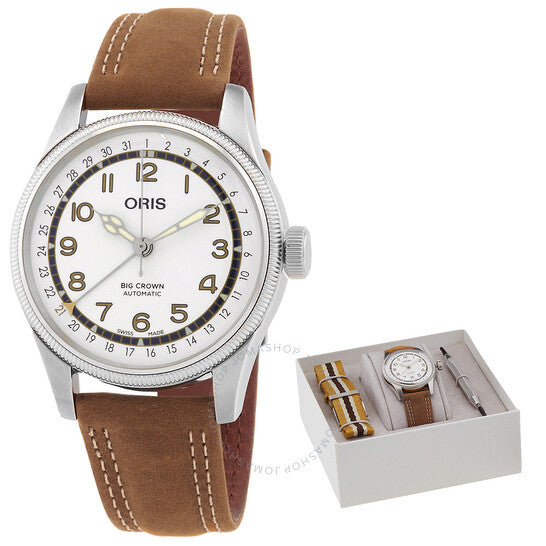 علبة فضية اللون من الفولاذ المقاوم للصدأ مع سوار بني من جلد العجل. إطار ثابت فضي اللون من الفولاذ المقاوم للصدأ. ميناء أبيض بعقارب فضية اللون على شكل كاتدرائية وعلامات ساعات رقمية عربية. نوع الميناء: تناظري. عقارب وعلامات مضيئة. مؤشر للتاريخ. أوريس كاليبر 754، قاعدة SW 200-1، حركة أوتوماتيكية، مبنية على SW 200-1، تحتوي على 26 جوهرة، تنبض بمعدل 28800 ذبذبة في الساعة، ولديها احتياطي طاقة لمدة 38 ساعة تقريبًا. كريستال ياقوت مقاوم للخدش والانعكاس. تاج قابل للسحب/الدفع. غطاء خلفي صلب. شكل دائري، حجم العلبة: 40 مم، سمكها: 11.70 مم. مشبك بإبزيم تانغ. مقاومة للماء حتى عمق 50 مترًا / 150 قدمًا. الوظائف: التاريخ، الساعة، الدقيقة، الثانية. معلومات إضافية: تتضمن سوار ناتو إضافيًا وأداة. سلسلة Big Crown. تصميم ساعة كاجوال. علامة الساعة: صناعة سويسرية. ساعة أوريس بيج كراون أوتوماتيكية بمينا أبيض 01 754 7741 4081-Set.