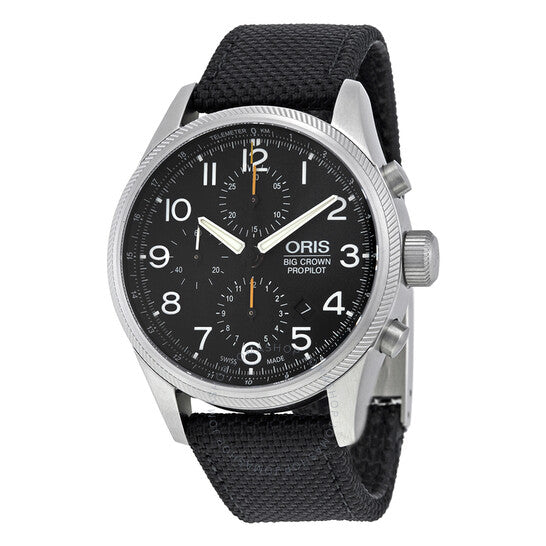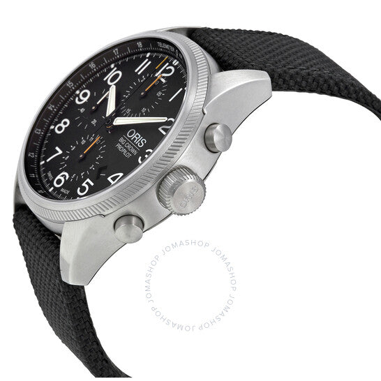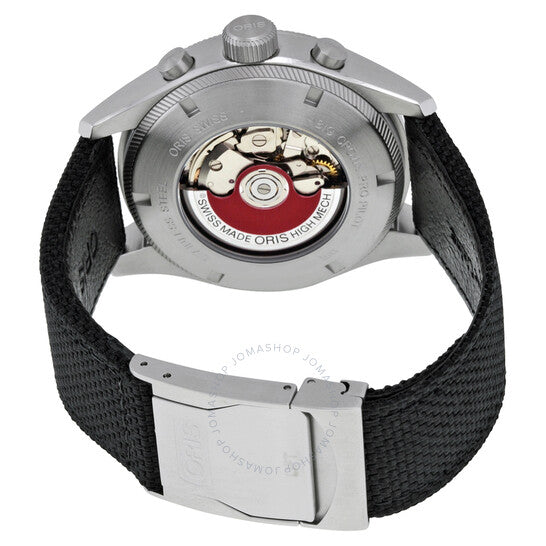 علبة من الفولاذ المقاوم للصدأ مع سوار من القماش الأسود. إطار ثابت من الفولاذ المقاوم للصدأ. ميناء أسود بعقارب فضية اللون وعلامات ساعات بأرقام عربية. علامات دقائق. علامات تيليمتر حول الحافة الخارجية. نوع الميناء: تناظري. عقارب وعلامات مضيئة. عرض التاريخ بين موضعي الساعة الرابعة والخامسة. كرونوغراف - ثلاثة أقراص فرعية تعرض: ٦٠ ثانية، ٦٠ دقيقة، و١٢ ساعة. حركة أوتوماتيكية مع احتياطي طاقة لمدة ٤٨ ساعة. زجاج ياقوت مقاوم للخدش. تاج لولبي. ظهر هيكل عظمي. قطر العلبة: ٤٤ مم. سمكها: ١٠ مم. شكلها دائري. عرض السوار: ٢٢ مم. طول السوار: ٧.٥ بوصة. مشبك قابل للطي. مقاومة للماء حتى عمق ١٠٠ متر / ٣٣٠ قدمًا. الوظائف: كرونوغراف، تيليمتر، تاريخ، ساعة، دقيقة، ثانية. معلومات إضافية: مناسبة للسباحة والغطس السطحي؛ قد لا تكون مناسبة للغوص. طراز ساعة رسمية. علامة الساعة: صناعة سويسرية. رقم الموديل: 01 774 7699 4134-07 5 22 14FC. ساعة أوريس بيج كراون برو بايلوت كرونوغراف للرجال، بمينا أسود، ونسيج أسود، 774-7699-4134FS.