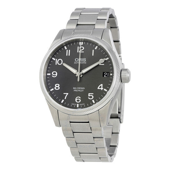 علبة من الفولاذ المقاوم للصدأ مع سوار فضي اللون. إطار من الفولاذ المقاوم للصدأ بحافة معدنية ثابتة. ميناء رمادي اللون مع عقارب فضية مضيئة وعلامات ساعات عربية. علامات دقائق حول الحافة الخارجية. نوع الميناء: تناظري. عقارب وعلامات مضيئة. عرض التاريخ عند موضع الساعة 3. عيار أوريس 751، قاعدة حركة أوتوماتيكية SW 220-1 مع احتياطي طاقة لمدة 38 ساعة. زجاج ياقوت مقاوم للخدش. تاج لولبي. غطاء خلفي شفاف. حجم العلبة: 41 مم. سمكها: 12.2 مم. شكلها دائري. عرض السوار: 20 مم. مشبك قابل للطي مع مفتاح أمان. مقاومة للماء حتى عمق 100 متر / 330 قدمًا. الوظائف: التاريخ، الساعة، الدقائق، الثواني. طراز ساعة فاخرة. علامة الساعة: صناعة سويسرية. ساعة أوريس بيج كراون بروبايلوت ديت أوتوماتيكية للرجال 01 751 7697 4063-07 8 20 19.