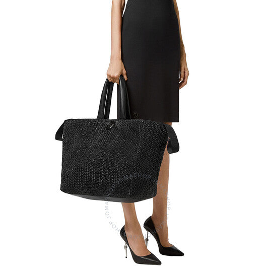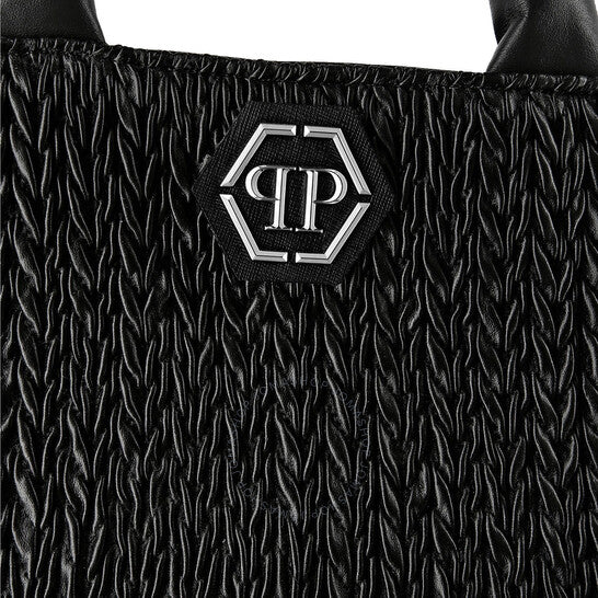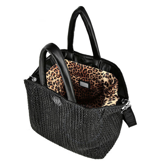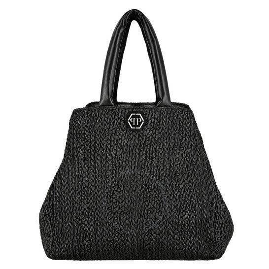 حقيبة هوبو نسائية من فيليب بلين. رمز المنتج: AAAA-WBA1445-PTE003N-02. اللون: أسود. حقيبة هوبو كبيرة من فيليب بلين، تصميم أيقوني. هذه الحقيبة مصنوعة من جلد نابا وجلد صناعي مضفر، وتحتوي على حزامين للكتف: حزام نايلون مزين بشعار الشركة وحزام سميك من الراتنج. تتميز الواجهة الأمامية برقعة سداسية من البولي بروبيلين، بينما يتميز الجزء الداخلي بقفل مغناطيسي وبطانة قماشية منقطة. الغلاف الخارجي: 60% بولي يوريثان، 30% بوليستر، 10% قطن؛ الغلاف الخارجي رقم 2: 100% جلد غنم؛ البطانة: 100% بوليستر؛ الحشو: 50% بولي يوريثان، 50% بولي أميد. صنع في إيطاليا.