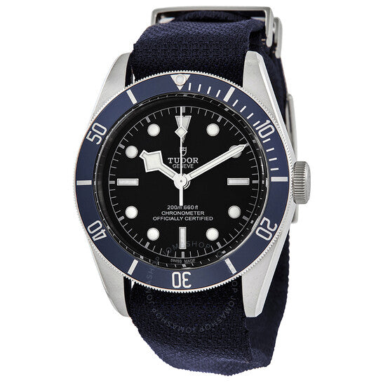 علبة من الفولاذ المقاوم للصدأ مع سوار قماشي أزرق. إطار دوار أحادي الاتجاه من الفولاذ المقاوم للصدأ مع ألومنيوم مؤكسد أزرق غير لامع. ميناء أسود بعقارب فضية مضيئة وعلامات ساعات منقطة. علامات دقائق حول الحافة الخارجية. نوع الميناء: تناظري. عقارب وعلامات مضيئة. حركة أوتوماتيكية من طراز Tudor Calibre MT5602، مبنية على طراز Tudor MT5612، تحتوي على 26 جوهرة، تنبض بمعدل 28800 ذبذبة في الساعة، ولديها احتياطي طاقة يصل إلى حوالي 70 ساعة. زجاج من الياقوت المقاوم للخدش. تاج لولبي. غطاء خلفي صلب. شكل دائري. حجم العلبة: 41 مم. سمك العلبة: 13 مم. عرض السوار: 22 مم. مشبك تانغ. مقاومة للماء حتى عمق 200 متر / 660 قدمًا. الوظائف: الساعة، الدقيقة، الثانية. سلسلة بلاك باي. تصميم ساعة فاخرة. علامة الساعة: صناعة سويسرية. ساعة تيودور بلاك باي أوتوماتيكية للرجال بمينا أسود M79230B-0006.