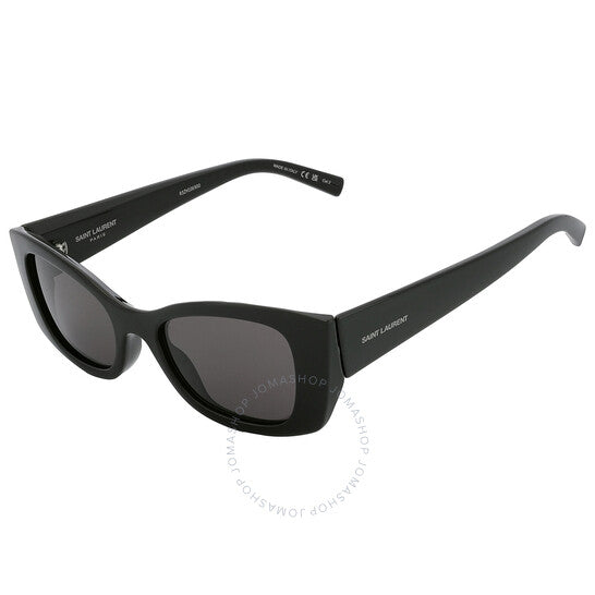 نظارات شمسية من سان لوران. رقم السلسلة: SL 593. رمز اللون: 001. الشكل: عين القطة. عرض العدسة: 52 مم. جسر العدسة: 20 مم. طول الذراع: 145 مم. حماية 100% من الأشعة فوق البنفسجية. غير مستقطب. مادة الإطار: بلاستيك. لون الإطار: أسود. نوع العدسات: أسود. نمط الحافة: حافة كاملة. رمز UPC/EAN: 889652429410. نظارات شمسية نسائية سوداء من سان لوران، عين القطة، SL 593 001 52.