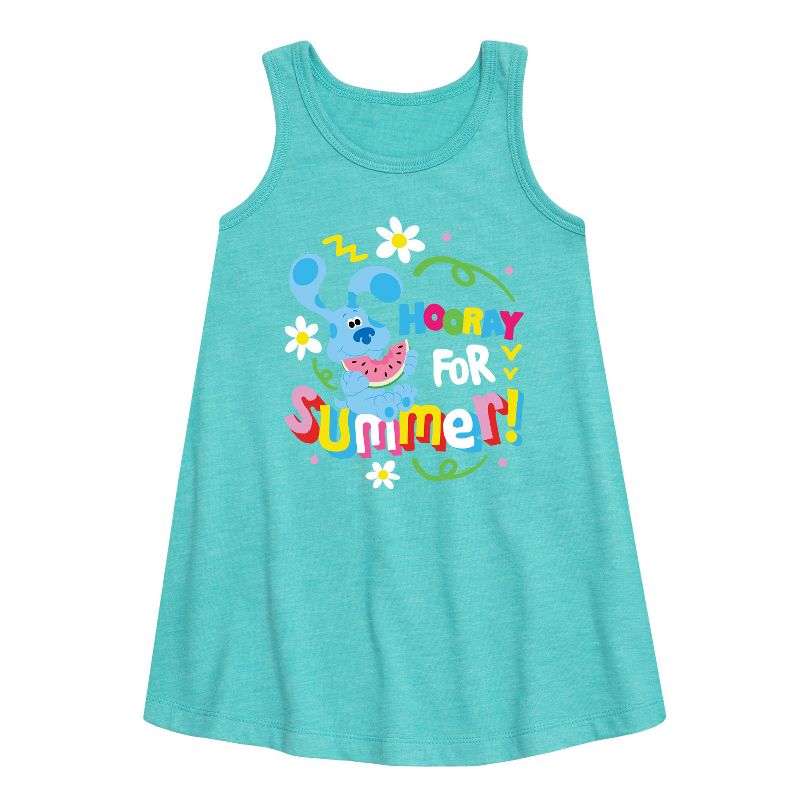 بلوز كلوز آند يو! - هيا نحتفل بالصيف - فستان بقصة حرف A للفتيات الصغيرات والشابات - انطلقي في عالم من الاكتشاف مع ملابس بلوز كلوز آند يو! الجرافيكية، بتصاميمها المرحة والملونة المستوحاة من مسلسل ما قبل المدرسة المحبوب. كل قطعة تُبرز شخصيات بلو، وجوش، وماجنتا، وغيرهم من الشخصيات المفضلة، تُجسد المرح والتعلم والفضول الذي يجعل المسلسل ساحرًا. مثالية للمعجبين الصغار والآباء الحنينين إلى الماضي، تُضفي هذه المجموعة مغامرات مليئة بالألغاز بأسلوب مرح ومناسب للأطفال.
