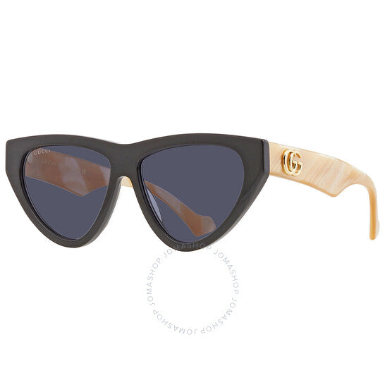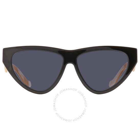 نظارات شمسية من غوتشي. رقم السلسلة: GG1333S. رمز اللون: 004. الشكل: عين القطة. عرض العدسة: 58 مم. جسر العدسة: 14 مم. طول الذراع: 145 مم. حماية 100% من الأشعة فوق البنفسجية. مادة الإطار: أسيتات معاد تدويره. لون الإطار: أسود. نوع العدسات: أزرق. نمط الحافة: حافة كاملة. رمز UPC/EAN: 889652414065. نظارات شمسية غوتشي زرقاء نسائية بتصميم عين القطة GG1333S 004 58.
