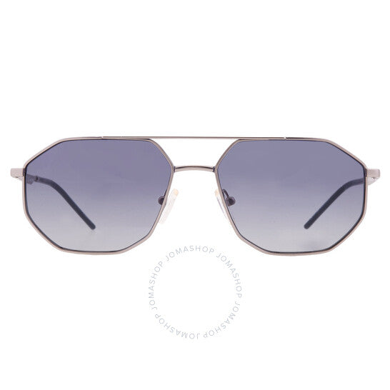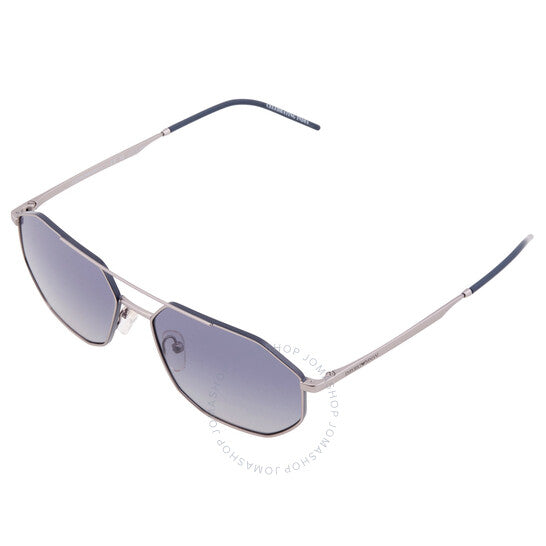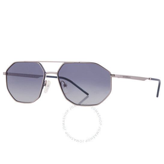نظارات شمسية من إمبوريو أرماني. رقم السلسلة: EA2147. رمز اللون: 30454L. الشكل: نافيجيتور. عرض العدسة: 58 مم. جسر العدسة: 16 مم. طول الذراع: 145 مم. حماية 100% من الأشعة فوق البنفسجية. مادة الإطار: معدن. لون الإطار: فضي مطفي. نوع العدسات: أزرق متدرج. نمط الحافة: حافة كاملة. رمز UPC/EAN: 8056597968102. نظارات شمسية إمبوريو أرماني زرقاء متدرجة للرجال، نافيجيتور، EA2147 30454L، 58.