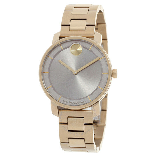 علبة وسوار من الفولاذ المقاوم للصدأ ذهبي اللون. إطار ثابت من الفولاذ المقاوم للصدأ ذهبي اللون. ميناء رمادي مع عقارب ذهبية اللون وعلامات ساعات. نوع الميناء: تناظري. حركة كوارتز. زجاج معدني مقاوم للخدش. تاج قابل للسحب/الدفع. غطاء خلفي صلب. شكل العلبة دائري، مقاسها: 34 مم. إبزيم قابل للطي بزر ضغط. مقاومة للماء حتى عمق 30 مترًا / 100 قدم. الوظائف: الساعات، الدقائق. سلسلة بولد أكسيس. تصميم كاجوال. علامة الساعة: صناعة سويسرية. ساعة موفادو بولد أكسيس كوارتز نسائية بمينا رمادي، 3601080.