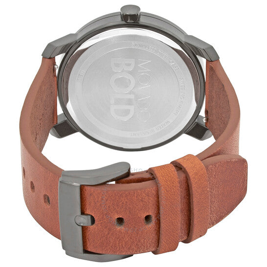 علبة من الفولاذ المقاوم للصدأ مطلية بالأيونات باللون الأسود مع سوار من الجلد بلون الكونياك. إطار ثابت مطلي بالأيونات باللون الأسود. ميناء أسود بعقارب ومؤشرات ساعات معدنية بنية اللون. مؤشرات دقائق حول الحافة الخارجية. تظهر نقطة موفادو عند موضع الساعة ١٢. نوع الميناء: تناظري. حركة كوارتز. كريستال معدني K1 مقاوم للخدش. تاج قابل للسحب/الدفع. غطاء خلفي صلب. شكل دائري. حجم العلبة: ٤١ مم. عرض السوار: ٢٠ مم. مشبك تانغ. مقاومة للماء حتى عمق ٥٠ مترًا / ١٦٥ قدمًا. الوظائف: الساعات، الدقائق، الثواني. تصميم كاجوال. ساعة موفادو بولد سوداء للرجال رقم ٣٦٠٠٤٨٩.