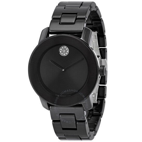 علبة وسوار من الفولاذ المقاوم للصدأ والسيراميك باللون الأسود. إطار ثابت من السيراميك الأسود. ميناء أسود بعقارب سوداء. تظهر نقطة موفادو عند موضع الساعة ١٢. نوع الميناء: تناظري. حركة كوارتز. كريستال K1 مقاوم للخدش. تاج قابل للسحب/الدفع. غطاء خلفي صلب. شكل دائري، مقاس العلبة: ٣٦ مم. مشبك قابل للطي. مقاومة للماء حتى عمق ٣٠ مترًا / ١٠٠ قدم. الوظائف: الساعات، الدقائق. سلسلة بولد سيراميك. طراز ساعة رسمية. علامة الساعة: صناعة سويسرية. ساعة موفادو بولد سيراميك كوارتز نسائية بمينا أسود، رقمها ٣٦٠٠٨٠٣.