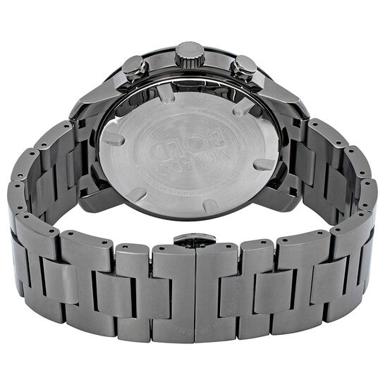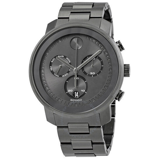 علبة وسوار من الفولاذ المقاوم للصدأ مطليان بالأيونات بلون البندقية. إطار ثابت مطلي بالأيونات بلون البندقية. ميناء بلون البندقية مع عقارب ومؤشرات ساعات بلون البندقية. تظهر نقطة موفادو عند موضع الساعة ١٢. نوع الميناء: تناظري. عرض التاريخ عند موضع الساعة ٦. كرونوغراف - ثلاثة أقراص فرعية تعرض: ٦٠ ثانية، ٣٠ دقيقة، ويوم الأسبوع. آلية حركة كوارتز. زجاج معدني مقاوم للخدش من نوع K1. تاج قابل للسحب/الدفع. غطاء خلفي صلب. شكل دائري. حجم العلبة: ٤٨ مم. سمكها: ١١ مم. عرض السوار: ٢٣ مم. مشبك قابل للطي بزر ضغط. مقاومة للماء حتى عمق ٣٠ مترًا / ١٠٠ قدم. الوظائف: كرونوغراف، تاريخ، يوم الأسبوع، ساعة، دقيقة، ثانية. طراز ساعة رسمية. ساعة موفادو بولد كرونوغراف رجالية بمينا بلون البندقية ٣٦٠٠٤٨٦.