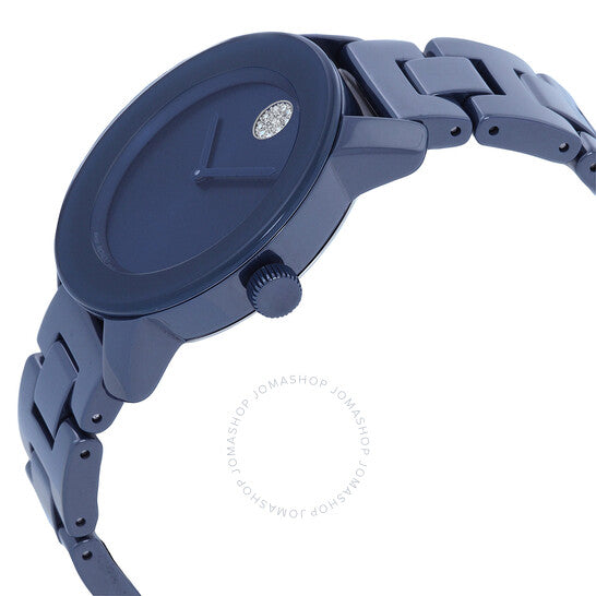 علبة وسوار من سيراميك IP أزرق. إطار ثابت من سيراميك IP أزرق. ميناء أزرق بعقارب زرقاء. تظهر نقطة موفادو عند موضع الساعة ١٢. نوع الميناء: تناظري. حركة كوارتز. كريستال K1 مقاوم للخدش. تاج قابل للسحب/الدفع. غطاء خلفي صلب. شكل دائري، مقاس العلبة: ٣٦ مم. مشبك قابل للطي بزر ضغط. مقاومة للماء حتى عمق ٣٠ مترًا / ١٠٠ قدم. الوظائف: الساعات، الدقائق. سلسلة Bold Evolution. تصميم كاجوال. علامة الساعة: صناعة سويسرية. ساعة موفادو Bold Evolution كوارتز نسائية بمينا زرقاء، رقمها 3600805.