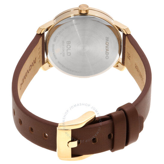 علبة من الفولاذ المقاوم للصدأ بلون الذهب الوردي مع سوار جلدي بني. إطار ثابت من الفولاذ المقاوم للصدأ بلون الذهب الوردي. ميناء أبيض مع عقارب ومؤشرات ساعات بلون الذهب الوردي. مؤشرات دقائق حول الحافة الخارجية. نوع الميناء: تناظري. حركة كوارتز. كريستال K1 مقاوم للخدش. تاج قابل للسحب/الدفع. غطاء خلفي صلب. شكل دائري، مقاس العلبة: 34 مم. مشبك بإبزيم. مقاومة للماء حتى عمق 30 مترًا / 100 قدم. الوظائف: الساعات، الدقائق، الثواني. سلسلة بولد. تصميم كاجوال. علامة الساعة: صناعة سويسرية. ساعة موفادو بولد كوارتز نسائية بمينا بيضاء 3601166.