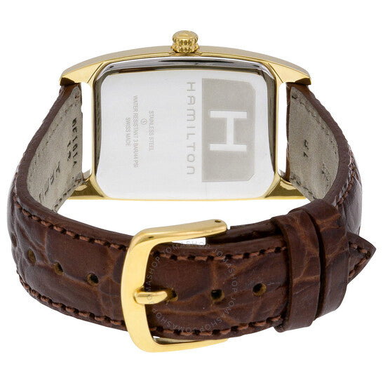 علبة من الفولاذ المقاوم للصدأ مطلية بالذهب الأصفر بتقنية PVD، مع سوار جلدي بني (منقوش بنقش جلد التمساح). إطار ثابت مطلي بالذهب الأصفر بتقنية PVD. ميناء أبيض بعقارب ذهبية اللون على شكل حرف ألفا وعلامات ساعات بأرقام عربية. علامات دقائق حول الحافة الخارجية. نوع الميناء: تناظري. ميناء فرعي للثواني الصغيرة عند موضع الساعة السادسة. حركة كوارتز عيار ETA 980.163. زجاج ياقوتي مقاوم للخدش. تاج قابل للسحب/الدفع. غطاء خلفي صلب. شكل مستطيل. أبعاد العلبة: 31.6 مم × 27 مم. سمك العلبة: 9 مم. عرض السوار: 18 مم. طول السوار: 7 بوصات. مشبك تانغ. مقاومة للماء حتى عمق 30 مترًا / 100 قدم. الوظائف: الساعات، الدقائق، الثواني. معلومات إضافية: مقاومة للمطر ورذاذ الماء، ولكنها لا تتحمل الاستحمام أو الغمر. سلسلة أمريكية كلاسيكية. طراز ساعة رسمية. علامة الساعة: صناعة سويسرية. ساعة هاميلتون بولتون كوارتز بمينا أبيض للرجال H13431553.