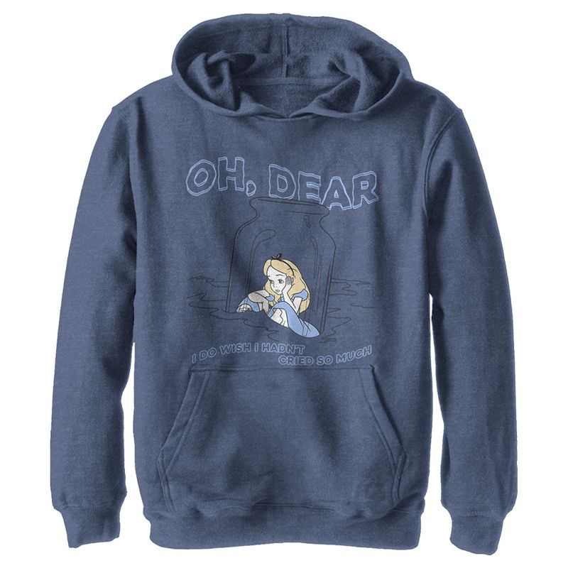 انطلق في غابة تولجي لتجد أسلوبك المفضل المرخص رسميًا من أليس في بلاد العجائب من ديزني! يتميز هذا الهودي الرائع للأولاد برسم أليس في زجاجة دموع، مع عبارة "يا إلهي، أتمنى لو لم أبكي كثيرًا" مطبوعة حولها. ستُصاب بالجنون إذا لم تشتريه!