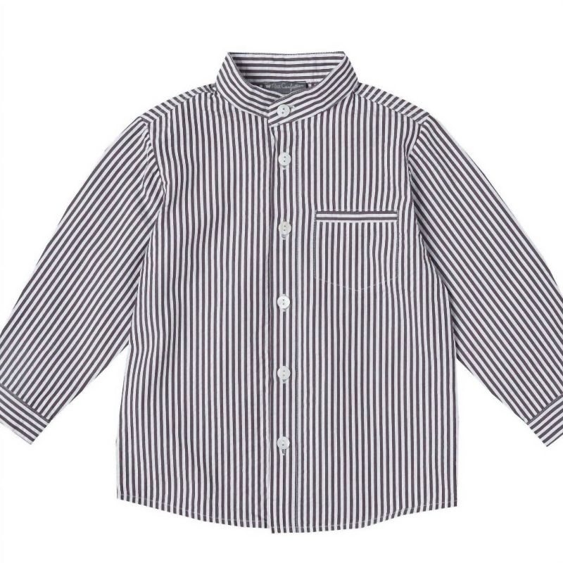 قميص بأزرار. قماش سيرساكر ناعم، وأزرار لؤلؤية، وجيب أمامي. قطن ١٠٠٪. ياقة قابلة للتحويل.