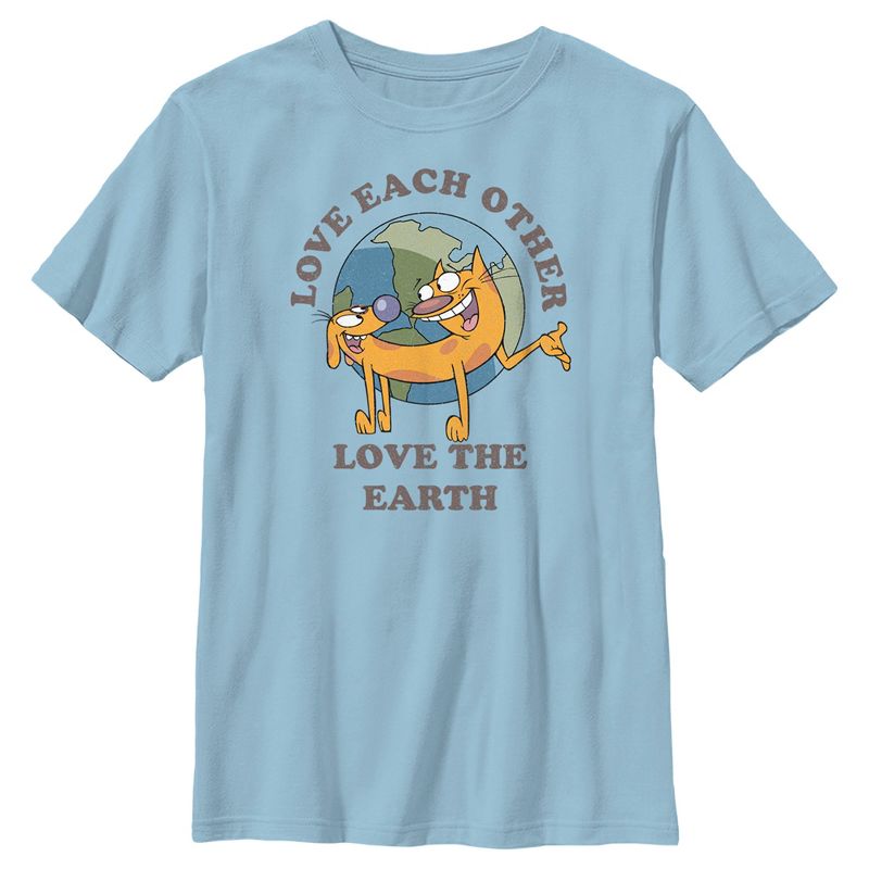 سواءً كنتَ مثقفًا جدًا، مثل "كات"، أو أكثر عفويةً، مثل "دوج"، سيجد الجميع ما يُعجبهم في تيشيرت نيكلوديون "كات دوج لوف ذا إيرث" للأولاد، والذي يحمل صورة "كات" و"دوج" مع عبارة "أحبوا الأرض، أحبوا بعضكم البعض"، مع كوكب الأرض في الخلفية! يوم الأرض هو اليوم المثالي لإظهار تقديرك للبيئة ومسلسلك الكرتوني المفضل الذي يتناول قصة الأخوين "كات دوج".