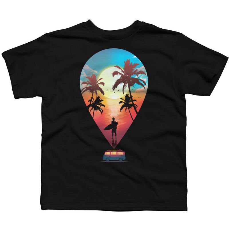 - محتارة في اختيار ما ترتدينه؟ هذا التصميم الجميل، الذي يُجسّد صورة ظلية راكب أمواج على شاطئٍ مُحاطٍ بأشجار النخيل، مُواجهًا محيطًا زاهي الألوان، مع طيورٍ وشمسٍ وغيومٍ في الأفق، فوق عربةٍ مُخصصةٍ لركوب الأمواج، مثاليٌّ لفصل الصيف!