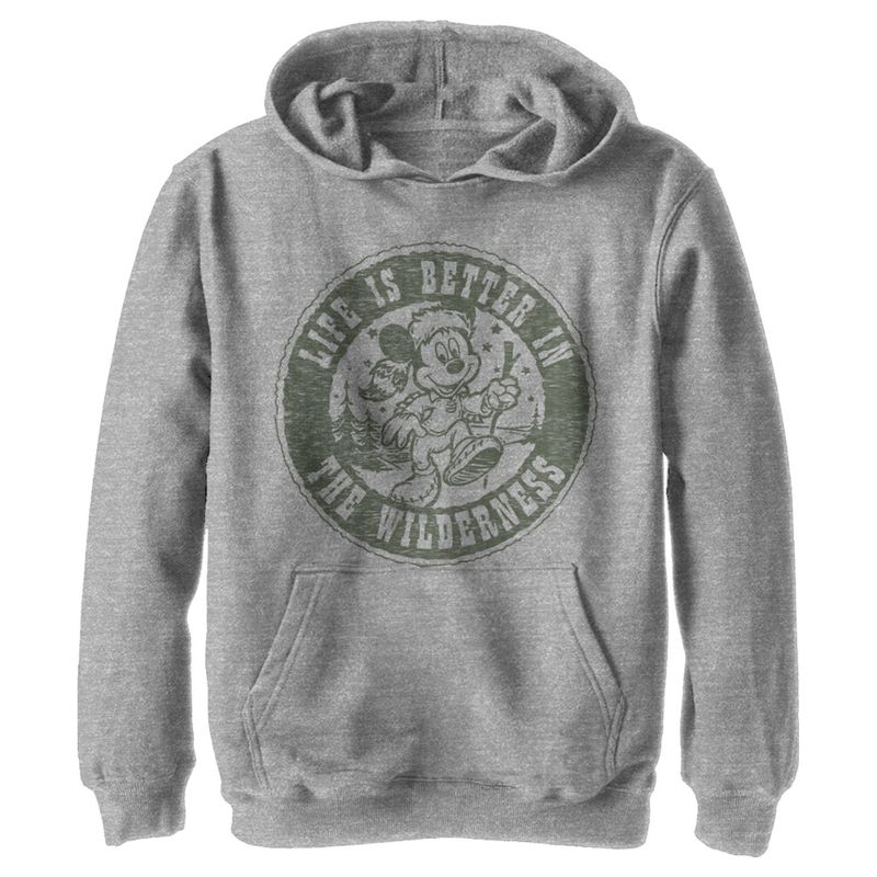 من كان ليتخيل أن ارتداء "موسي" بهذه الروعة؟ احتفل بشخصية والت ديزني الأيقونية مع هذه التصاميم المرخصة رسميًا من ميكي ماوس وأصدقائه! يظهر ميكي في دائرة مطبوعة حوله عبارة "الحياة أفضل في البرية" في هذا القميص ذو القلنسوة للأولاد. أضف هذا القميص إلى مجموعتك اليوم، مثالي لرحلتك القادمة إلى ديزني لاند!
