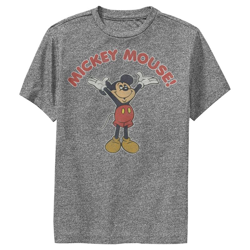 من كان ليتخيل أن ارتداء "ميكي ماوس" بهذه الروعة؟ احتفل بشخصية والت ديزني الأيقونية مع هذه التصاميم المرخصة رسميًا من ميكي ماوس وأصدقائه! هذا التيشيرت للأولاد بتصميم عتيق وباهت، يتميز بميكي وهو يرفع يديه نحو كلمة "ميكي ماوس" المطبوعة فوقه. سيكون هذا التيشيرت المثالي لرحلتك القادمة إلى ديزني لاند!