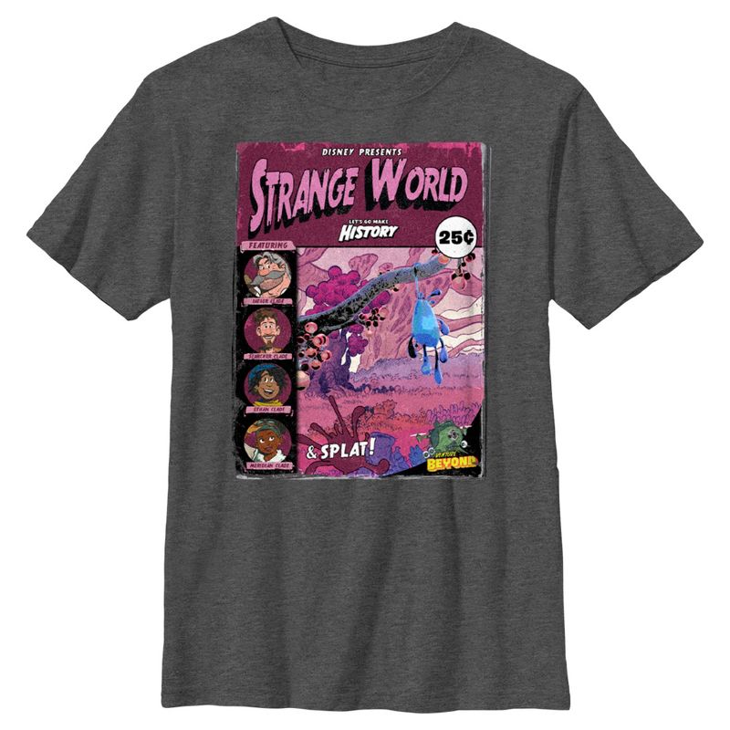 - استمتع بالراحة والأناقة في نفس الوقت مع تصميم هذا التي شيرت الجرافيكي الفريد للأولاد من Strange World.