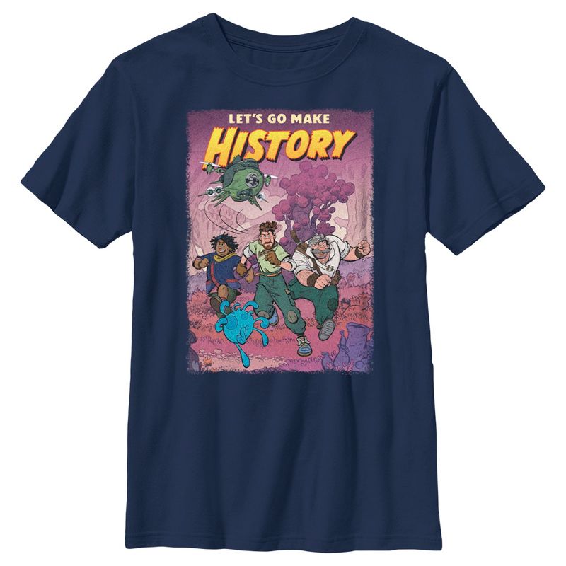 - تباهَ بملابسك اليومية الأنيقة مع هذا التيشيرت الجديد للأولاد! يتميز بصورة مرسومة لعائلة كليد بأسلوب القصص المصورة، مع عبارة "لنصنع التاريخ!" من فيلم "هيا بنا نصنع التاريخ!" مطبوعة في الأعلى!