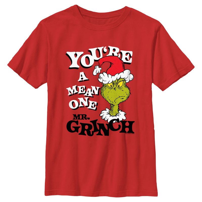 تباهَ بجمالك مع هذا التيشيرت الجديد والأنيق للأولاد، مثالي لموسم الأعياد! يحمل عبارة "أنت شرير يا سيد غرينش"، مع غرينش نفسه على الجهة الأمامية.