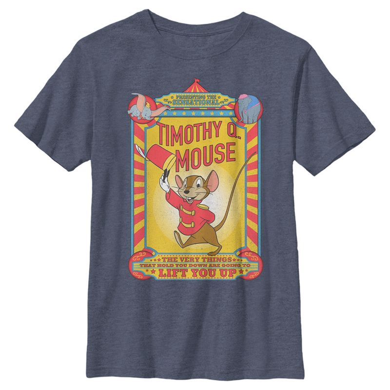 انطلق مع دمبو مع هذا التيشيرت المرخص رسميًا من ديزني، تيموثي كيو ماوس، بشعار السيرك! يُظهر هذا التيشيرت الرائع معلم دمبو، تيموثي كيو ماوس، وهو يرفع قبعته ويبتسم ابتسامة عريضة، وأسفله عبارة "الأشياء التي تُعيقك سترفعك" مطبوعة بأسلوب السيرك الكلاسيكي. احصل على هذا التيشيرت اليوم ولا تدع أحدًا يمنعك!