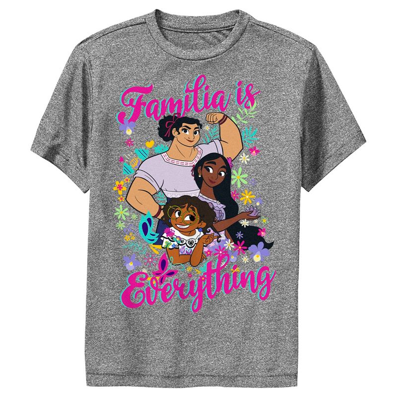 - استمتع بالراحة والأناقة في نفس الوقت مع تصميم هذا التي شيرت الجرافيكي الفريد للأولاد من Encanto.