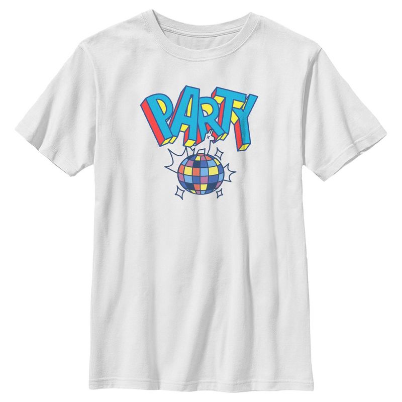 - تباهَ بملابسك مع هذا التيشيرت الجديد والأنيق للأولاد، مثالي لجميع المناسبات! يتميز بكلمة "حفلة" بأحرف ملونة، بالإضافة إلى كرة ديسكو متناسقة عليها لاما في الأمام.