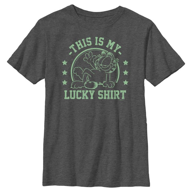 انضموا إلى قطّنا الكسول المحبوب مع هذا التيشيرت الاحتفالي الرسمي للأولاد، غارفيلد، مطبوع عليه "هذا قميصي المحظوظ"! يتميز هذا التصميم المهترئ بغارفيلد جالسًا بشكل مريح يلوّح بكلمة "مرحبًا" محاطًا بعبارة "هذا قميصي المحظوظ". اخبزوا لازانيا شهية للاحتفال الكبير بعيد القديس باتريك، وتألقوا بأناقة مع هذا التيشيرت الجديد ذي الرسومات!